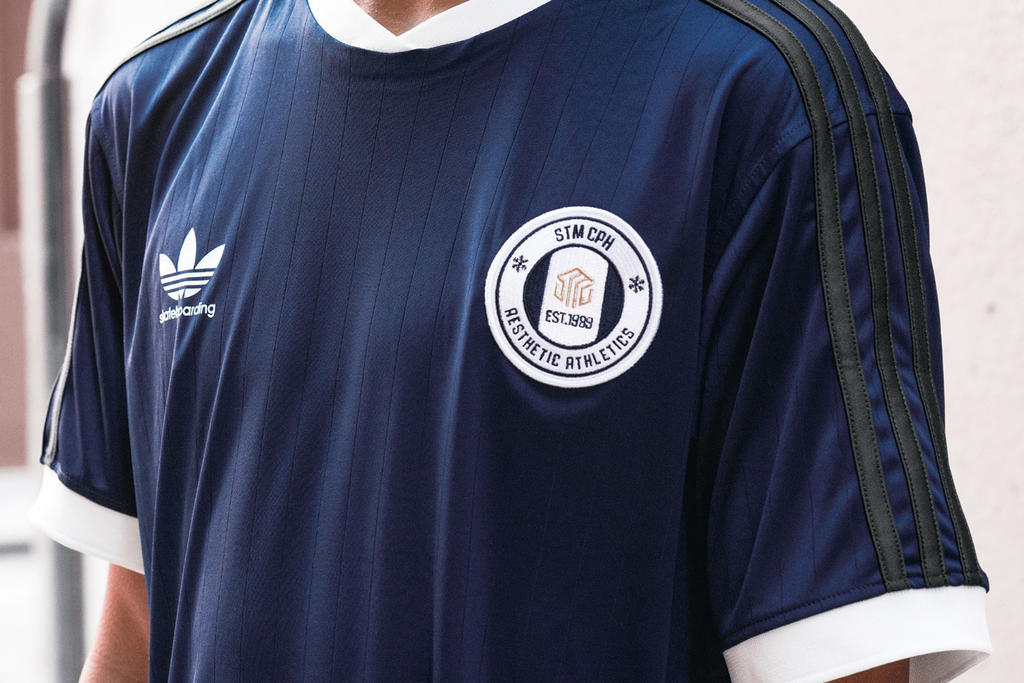 Esta colección ha sido inspirada por la combinación de dos de nuestras grandes pasiones; el skateboarding y el fútbol. Por ello la componen una camiseta de fútbol retro y un par de Adi Ease ambas customizadas por Steetmachine en las que aparece representando su casa, Copenhague.