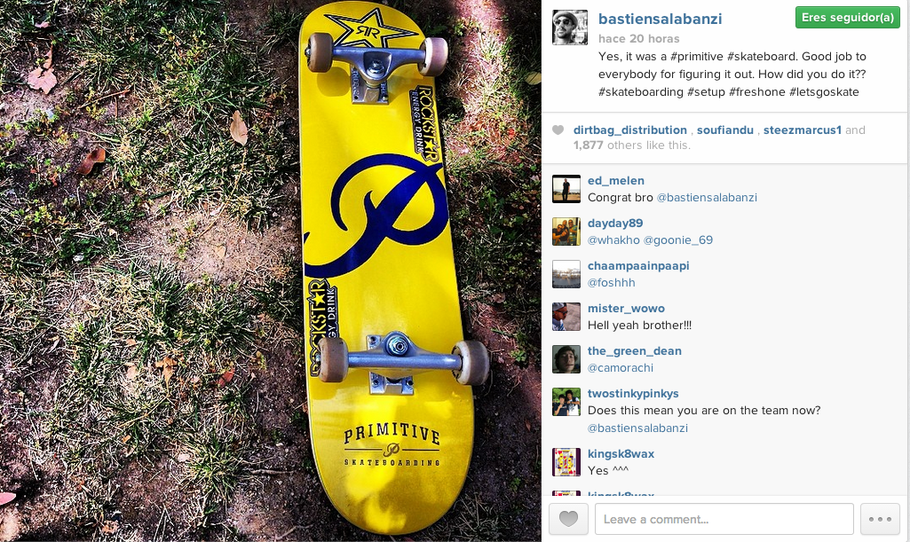 Aunque él mismo desmiente que ahora mismo no esté en el equipo de Primitive Skateboards, lo cierto es que todo parece indicar a que terminará estando. Su equipo corto, su parecido con los miembros del team y su larga amistad con Paul Rodriguez, todo indica que estará, estaremos atentos....