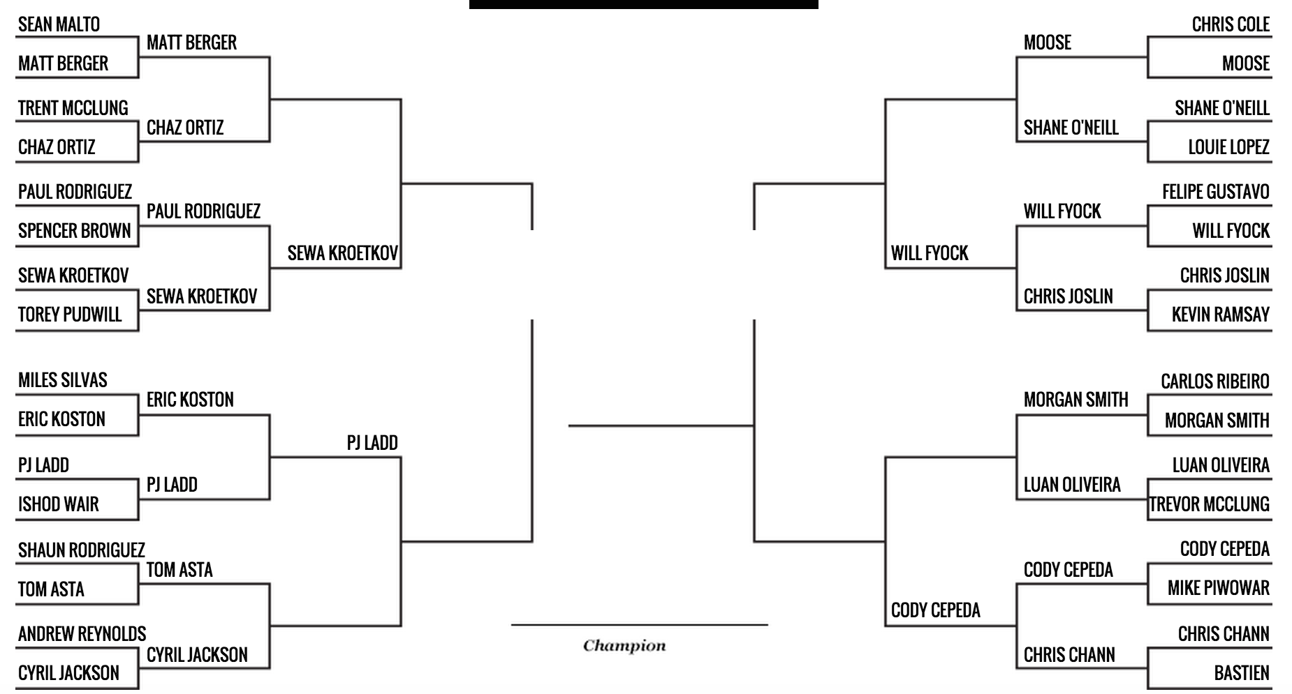 Este es el penúltimo fin de semana de la segunda ronda, y las cosas se están poniendo serias. Tenemos a un representante de cada rama en cuartos de final, así que ahora nos toca saber contra quiénes van Sewa Kroetkov, PJ Ladd, Will Fyock y Cody Cepeda. Pero este fin de semana, por lo pronto, sabremos quién va contra el mítico PJ Ladd y quién se enfrentará al sorprendente Will Fyock.