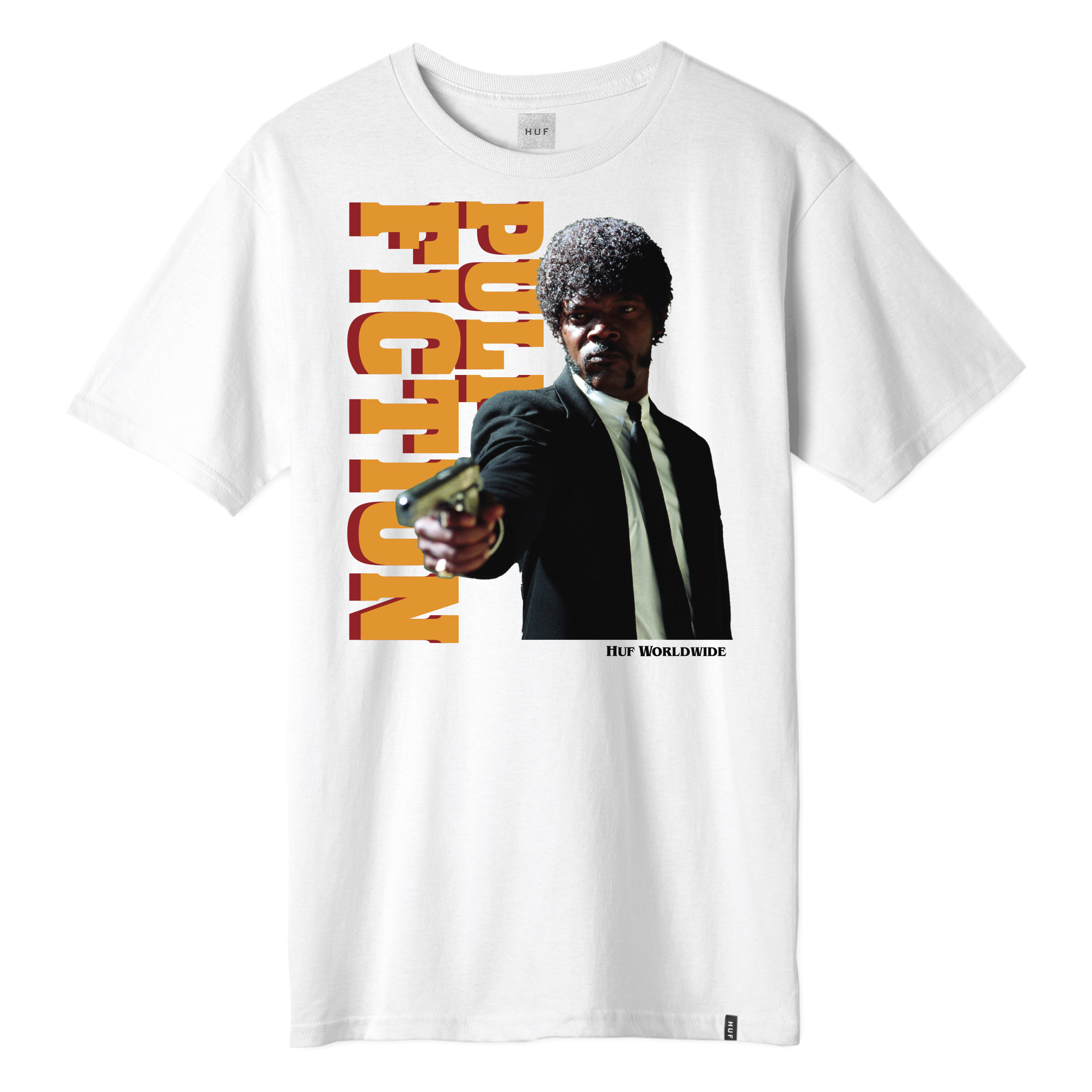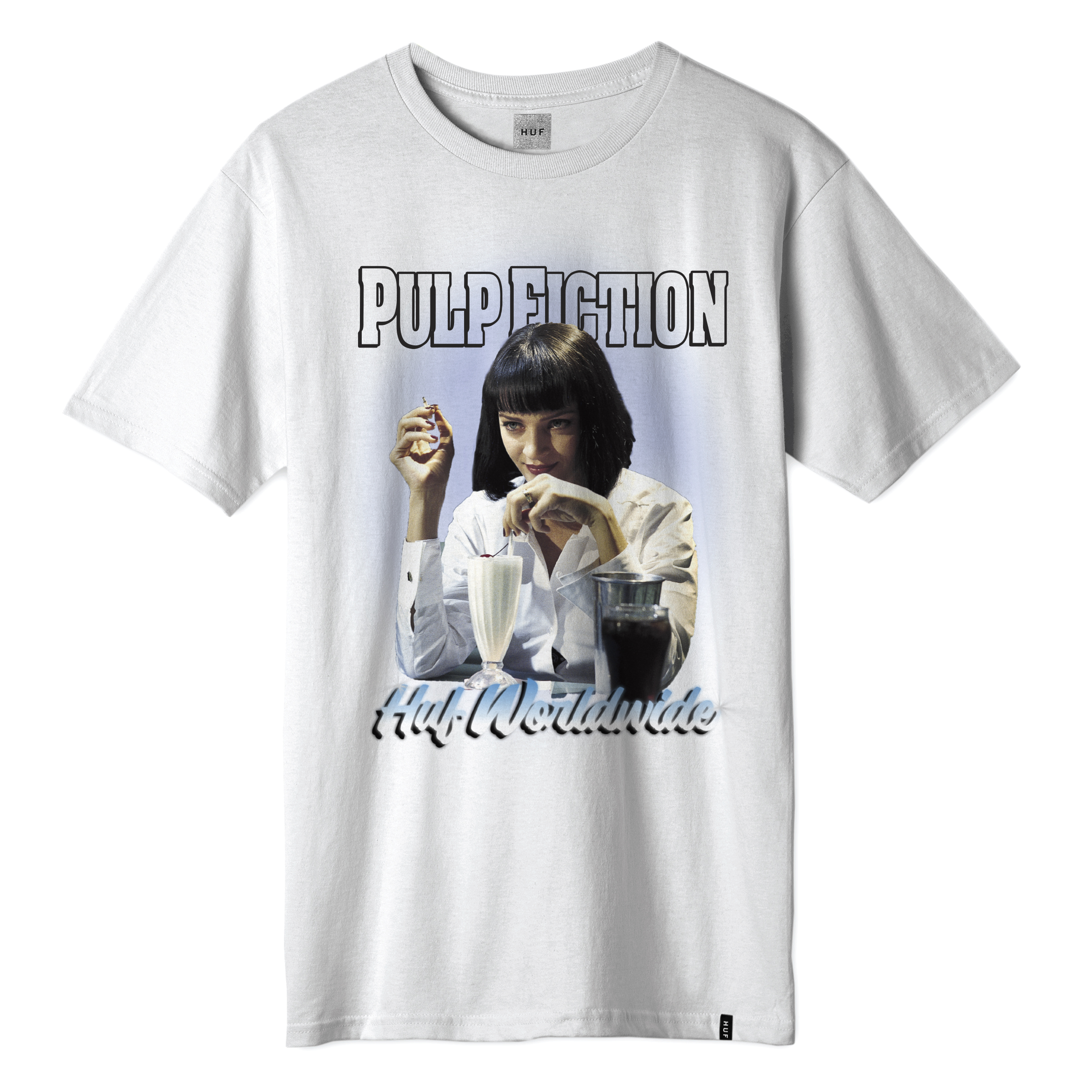 En su última colección de otoño/invierno HUF está buscando inspiración en el cine clásico. La marca celebra el 25 aniversario de la película Pulp Fiction de Quentin Tarantino presentando una cápsula llena de referencias a los personajes principales de la película: Mia Wallace (interpretada por Uma Thurman), Vincent Vega (interpretado por John Travolta) y Jules Winnifield (interpretado por Samuel L. Jackson).