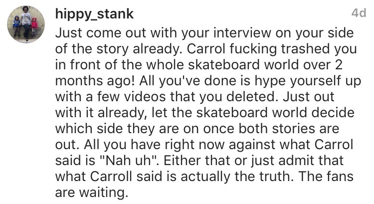 Mike Carroll le despidiera de Chocolate porque, según el TM de Crailtap, no comunicó e incluso ocultó su marcha, algo que ha perjudicado a Lakai. Pero después de recibir muchas críticas, de hacer ruido en las redes e incluso de