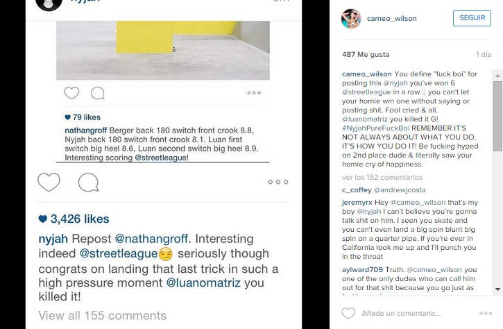 Nyjah que no puede dejar que gane su colega sin llorar o "hablar mierda". Le ha recriminado que tiene que estar feliz por un increíble segundo puesto y apunta que debería alegrarse por su