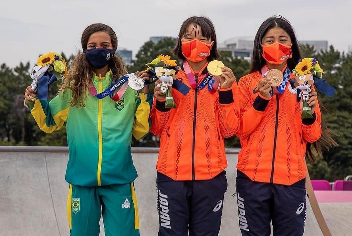Podium street femenino Juegos Olímpicos Tokio 2020Momiji Nishya se llevó el oro (Japón), Rayssa Leal la plata (Brasil) y Funa Nakayama el bronce (Japón) en la categoría femenina de street.