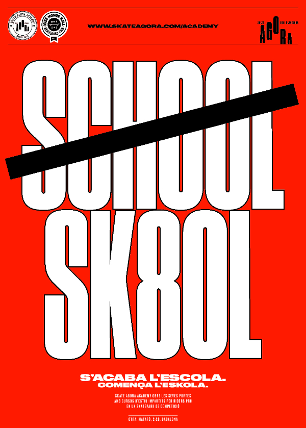 La Skate Agora Academy es una de las promesas que quedaba pendiente después del paso de la Street League. Cuando empezaron a construir el skatepark se habló en muchas ocasiones de que se crearía una escuela de skate para fomentar la práctica del skateboarding y enseñar los valores que hay detrás de este estilo de vida, pero ha ido pasando el tiempo y a muchos ya les sonaba a mentira. A estas alturas ya se puede decir que esta escuela existe, que se llama Skate Agora Academy y que iniciará sus cursos el 29 de junio de 2015 y los terminará el 13 de septiembre.